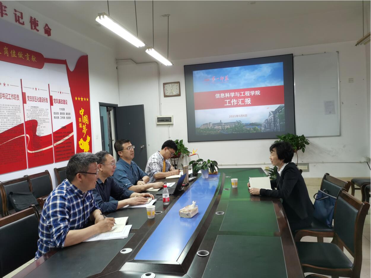 首先,副院长何向阳从基本情况、工作亮点、“十四五”规划、问题与建议四个方面进行了汇报。在着重讨论了学院当前存在的问题和对策后,童小娇作了讲话。她强调,盘活现有师资是现如今学院需考虑的首要问题,要通过制度激发人员的活力;其次是多走出去向同类院校学习学科专业建设与发展的经验;三是对标对表学位点的建设条件,未雨绸缪地准备电子信息类专业硕士点的申报工作;四是加大学生思想政治教育的力度,认真培养学生的学习、思维、实践等能力。