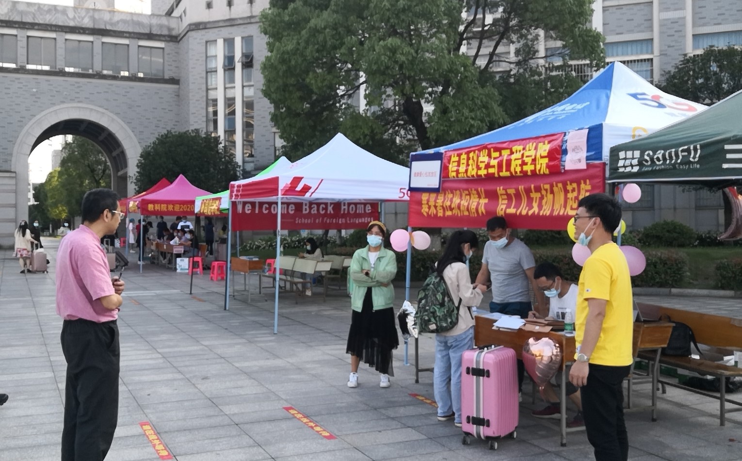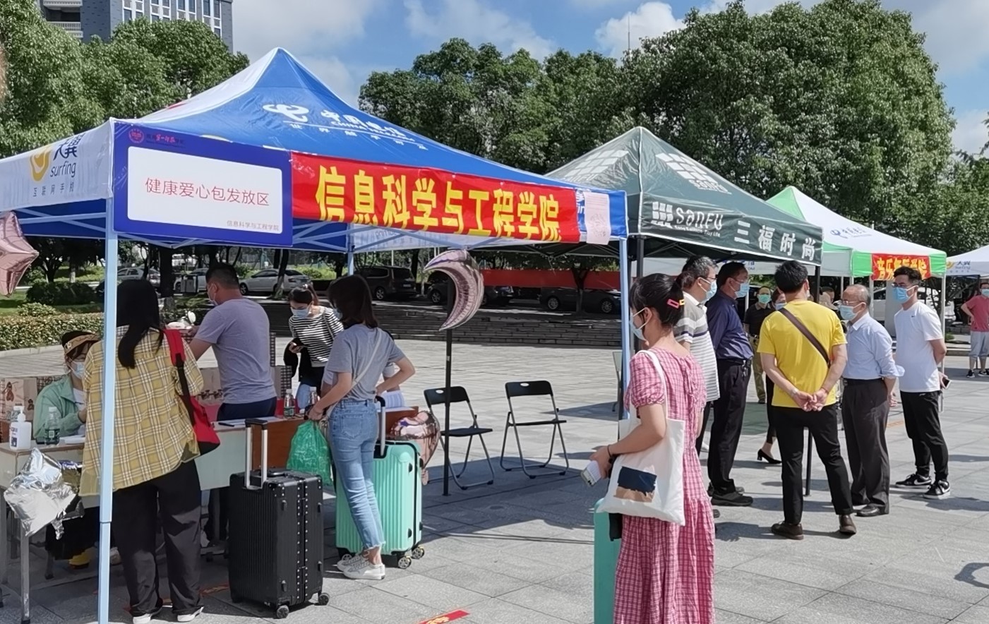 5月30日一大早,辅导员老师就赶来学校精心准备布置报到场地。“寒来暑往纸短情长,信工儿女扬帆起航”的标语,放有防疫指南、消毒湿巾、板蓝根等物资的健康爱心包,辅导员老师从自家带来的星星月亮气球装饰,领导老师的“欢迎回家”……这一幕幕,让久别校园的学生顿感温暖,给学生足够的安全感。大家脸上洋溢着的笑容,驱走了新冠疫情所带来的紧张与阴霾。