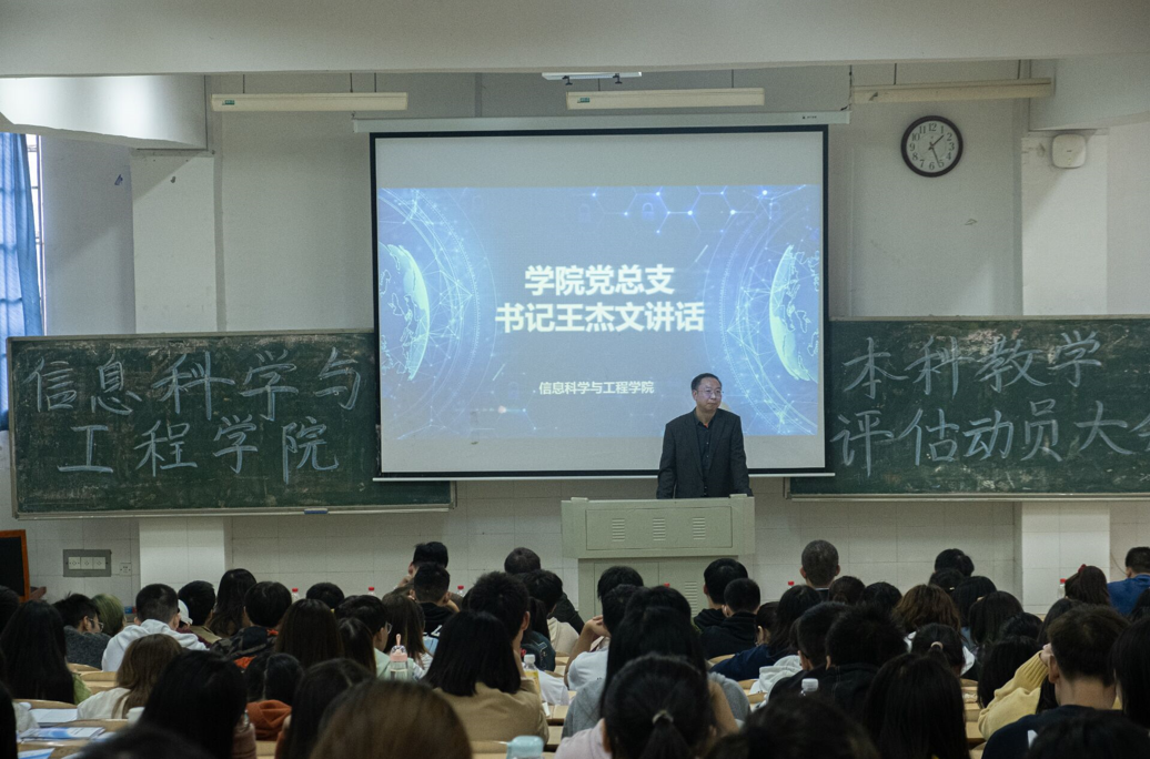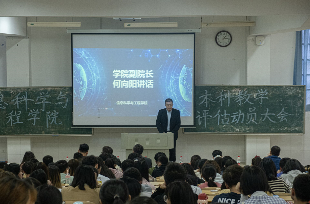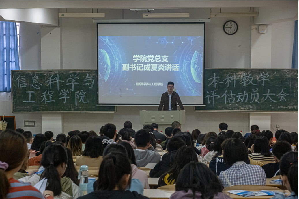 接着,副院长何向阳从迎评方面做了指导。他表示,教学评估不仅仅是对学校的人才培养、教学质量的检阅,更是对引领学校科学定位、分类合作、多元发展、特色办学有着重要意义。他希望全院学生从思想上高度重视,在行为上严格落实,全身心投入迎评工作,并寄语“在此次教学评估过程中,信工院一定以优异的表现,成为全校的楷模!”