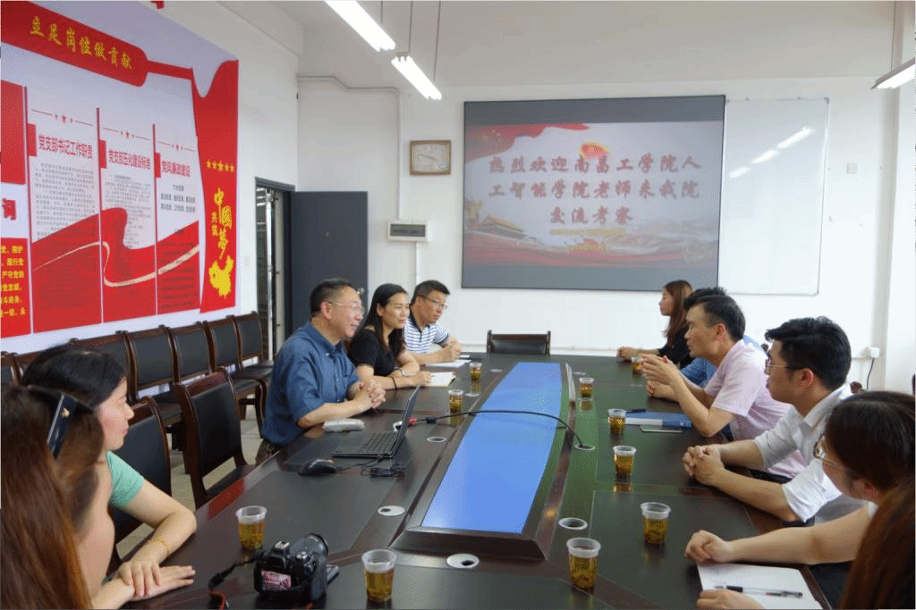 2019年5月24日下午,南昌工学院人工智能学院聂宗省书记一行八位教师来今年会考察交流。今年会党总支王杰文书记、易利副书记、王建军副院长、田祖伟副院长及党政办主任曾玢石老师在玉衡楼北栋407会议室热情接待了来访人员。