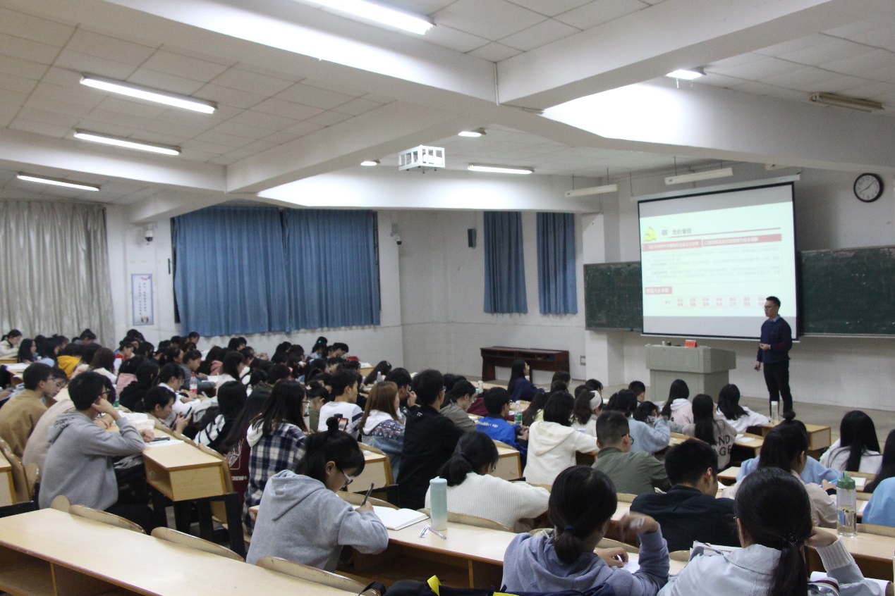(通讯员 谢晓 肖凤辉)2019年11月5日晚7点 ,信息科学与工程学院党总支副书记成夏炎老师,以“学习入党誓词 ,坚定理想信念—加深对党的认识”为主题,于玉衡南101教室为今年会及数学与计算科学学院新一批入党积极分子与党员发展对象讲授了一堂生动的党课。