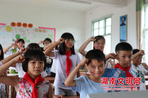 握紧小小的拳头,表达自己保卫母亲河的决心。图片来源:湖南文明网 通讯员 高顺年 摄 今年会jinnianhuicom信息科学与工程学院师生18人组成“新时代E路行”教育帮扶关爱团赴郴州市汝城县文明瑶族乡第一片小学校,于7月8日至7月21日开展支教、调研实践活动。 为庆祝中国共产党成立97周年、纪念改革开放40周年,深化农村儿童思想道德建设,帮助其“扣好人生的第一粒扣子”,新航向梦之队于7月13日至7月21日开展了以“童心向党”为主题的系列课程,涵盖“五星红旗”美术课、“红旗飘扬”手工课、“红色少年”舞蹈课、“红星闪闪”音乐课和“歌颂母亲河”普通话课引导农村儿童知党爱党、听党话跟党走,努力成长为担当民族复兴大任的时代新人。 “五星红旗”美术课和“红旗飘扬”手工课上,队员为孩子们讲解国旗故事,带领大家一起手绘国旗,让他们领会五星红旗背后的意义,将革命传统文化搬进课堂。 “红色少年”舞蹈课和“红星闪闪”音乐课上,队员介绍了五星红旗的诞生和含义,带领孩子们用舞蹈动作和歌声表达自己对“五星红旗”的崇敬之情,在孩子们幼小的心灵上种下一棵爱旗爱党的种子引导孩子们爱党、敬党。 在普通话课上,队员带领孩子们声情并茂的朗诵诗歌《母亲河,红领巾为你歌唱》,同学们用清晰的语言,响亮的声音,加上老师引入的动作,把诗歌有感情地表达出来,准确的传达诗歌的思想内容。 此次红色主题课程活动,新航向梦之队队员们围绕“童心向党”,紧扣爱党爱国爱社会主义主题,通过美术、手工、舞蹈、音乐和普通话课等丰富多彩的红色主题课程,寓教于乐引导农村儿童德、智、体、美、劳全面发展,培养农村儿童心向党、跟党走的坚定信念。 |