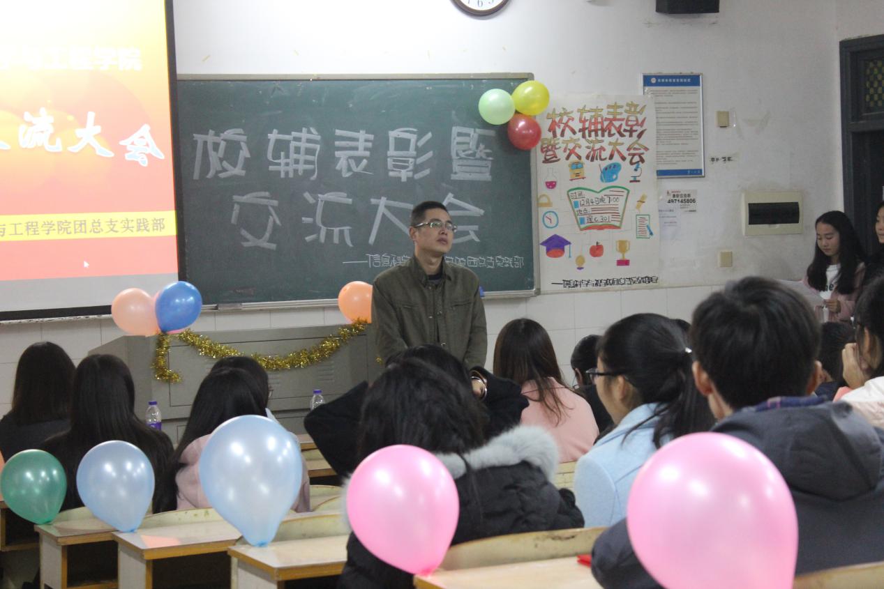 (通讯员 邓力超 陈思迁)为表彰学院优秀校辅人员,使新任校外辅导员能够加强了解以及尽快适应自己的校辅工作,12月4日晚7点,信息科学与工程学院在理C301教室隆重举行了学院校辅表彰暨交流大会。党总支副书记罗祥云、团总支书记李豪杰出席此次活动,团总支副书记赵越、学生会主席胡思婷等学生干部,以及所有校辅人员参加此次活动。