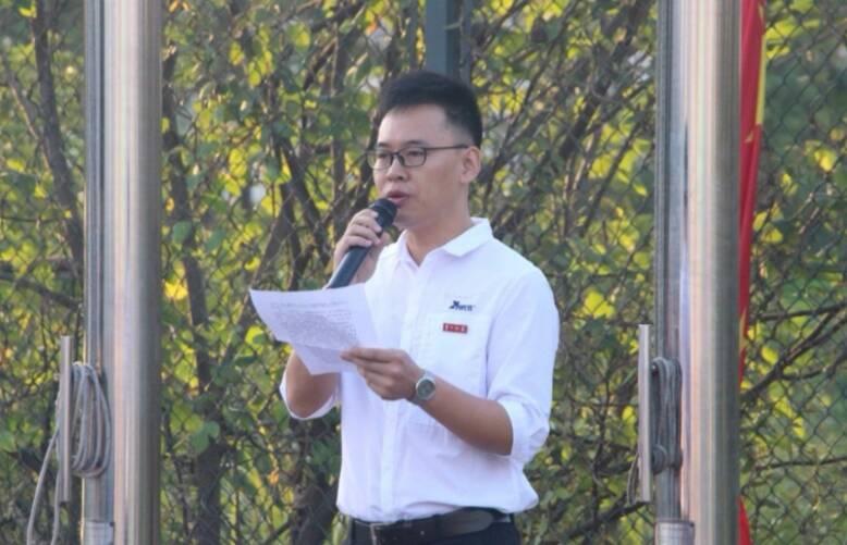 随后,学院党总支副书记成夏炎博士发表了以“为国庆生——新青年不负使命”为主题的国旗下讲话,向同学们阐述了新中国成立七十年来的辉煌历程。他在勉励大家努力奋斗追梦筑梦的同时,也对同学们提出“爱国爱家”、“怀揣梦想”、“努力探索”、“心向阳光”等几点期冀,希望大家能够不断完善、提高自己,创造自己的精彩人生。