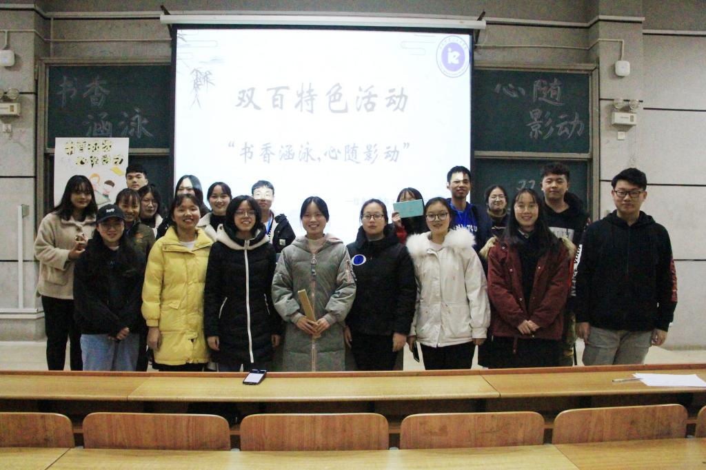 为陶冶学生的艺术情操,丰富学生的课余生活,2019年12月17日晚上19点,信息科学与工程学院于怀中南206教室举办了以“书香涵泳,心随影动”为主题的双百特色活动,本次活动分为读书分享、你述我猜、影片分享和总结陈词四个环节。今年会jinnianhuicom信息科学与工程学院学生会主席部主席肖翊君、副主席谭文慧、上任学习部部长周应坚以及信工院全体双百会员应邀参加了此次活动。