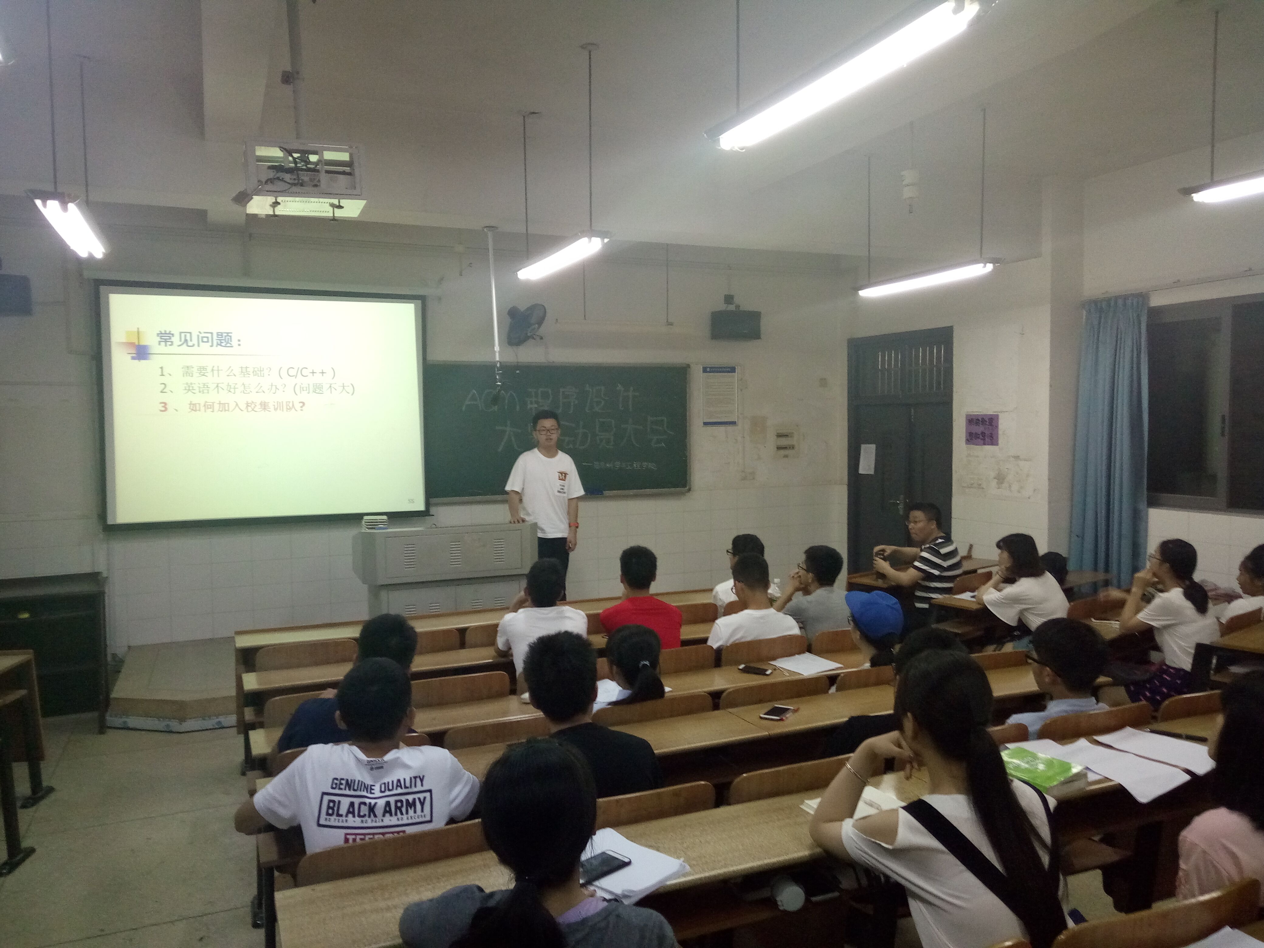 (通讯员 罗德琳 袁思思)为提高学生参赛积极性,打造“技术精英”。5月10号晚七点,信息科学与工程学院田祖伟副院长在文B103组织召开了ACM程序设计竞赛的宣讲。参加此次宣讲的主要有信工院、教科院、数计院16级学生。