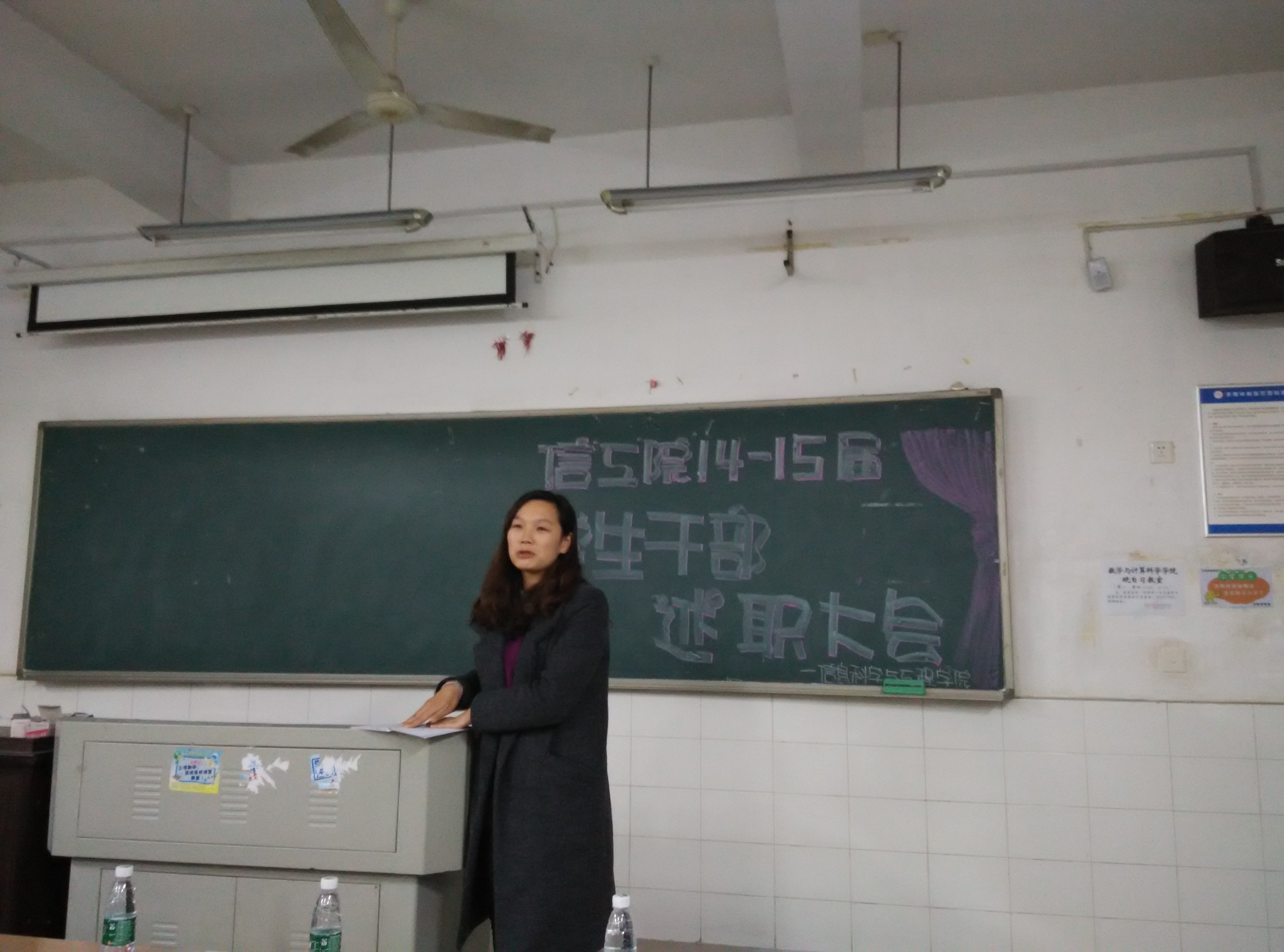 随后,团总支学生会各部门干部依次上台进行述职报告,总结本部门上学期的工作业绩和不足之处,并对本学期的工作做了详细的规划。同学们在美轮美奂的PPT和干部激情洋溢的演讲中了解了我学院学生干部在思想引领、学风建设、日常管理、社会实践等方面的具体活动。