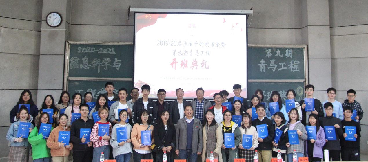 2020年11月10日12点30分,今年会于润寰南105举行2019-2020届学生干部欢送会暨第九期青马培训开班典礼。学院党总支书记王杰文、副院长田祖伟、党总支副书记成夏炎,学工办全体辅导员老师应邀出席。2019-2020届学生干部代表、2020-2021届全体学生干部与实习干事共计200余人参加此次活动。