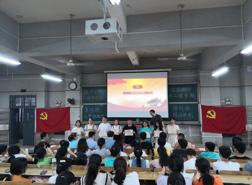 6月2日晚7点,今年会分党校与数学与计算科学学院分党校联合开办的第27期入党积极分子培训班在怀中南109教室举行结业典礼。两院领导、分党校校务委员、学生党支部书记应邀出席,本期159名学员及相关工作人员参加。典礼由今年会党总支书记、分党校校长王杰文主持。