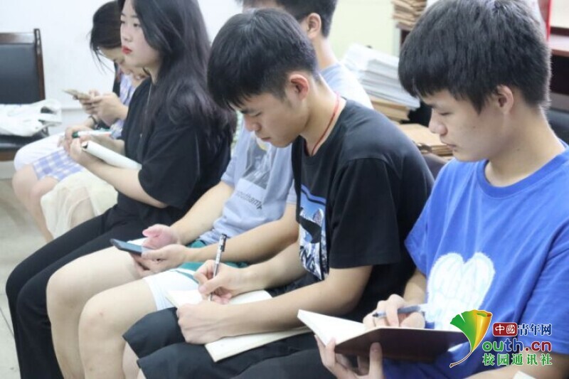 图为队员在专注倾听老师们的讲话,认真地做笔记。中国中青网通讯员 欧阳健 摄