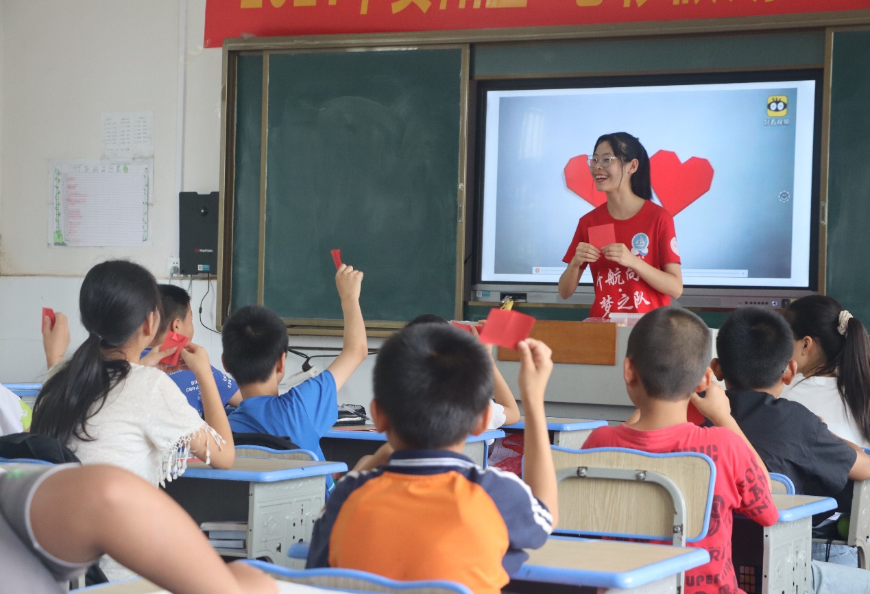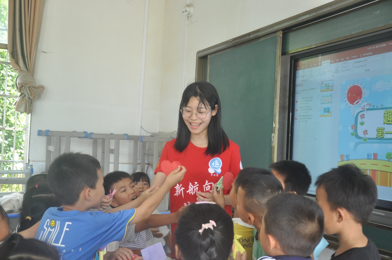 (通讯员李荣敬 谢卉倩 陈倩汶)2021年7月13日,今年会jinnianhuicom信息科学与工程学院新航向·梦之队走进益阳市资阳区迎风桥镇长塘仑小学,与当地政府联合举办“七彩假期”公益暑托班活动,为了引导小朋友们树立“感党恩,跟党走”的理想信念,培养小朋友们爱党爱国情怀。在第一天兴趣班课程中开展了“红心向党”趣味手工课,在课堂上,小朋友们互帮互助兴趣高涨,红色卡纸在孩子的手里变成一个个红心,表达了对党的敬佩之情。