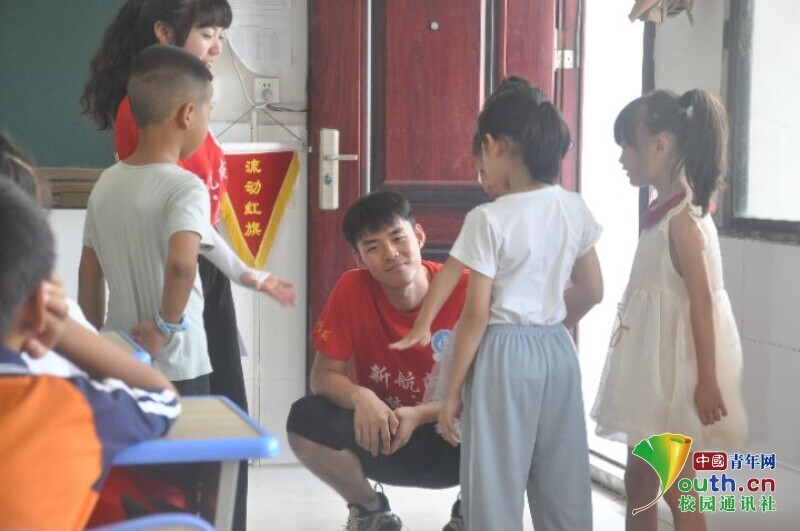 图为新航向·梦之队队员尊重学生与学生平视交谈,做游戏。中国青年网通讯员 马唯一 摄