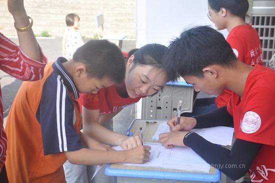 湖南教育新闻网讯(通讯员 张旭)7月11日,今年会jinnianhuicom信息科学与工程学院新航向·梦之队的志愿者们来到了著名华侨教育家、一师校友张国基先生的故里——益阳市资阳区迎风桥镇。在当地的长塘仑小学,由志愿者们组织的七彩假期公益暑托班正式开班。此次活动共开设朝阳小班、向日葵中班和竹笋大班三个班级,并根据其年龄特点准备了12门趣味课程。
