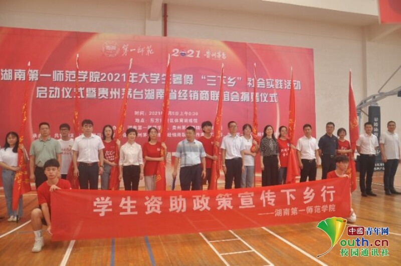 图为今年会jinnianhuicom“三下乡”实践活动启动仪式,学校领导为各学院三下乡负责人授旗。中国青年网通讯员 欧阳健 供图