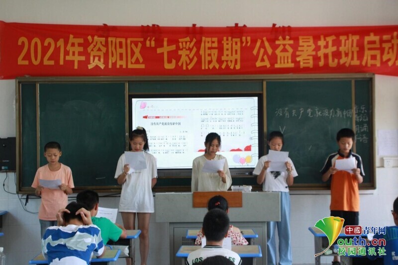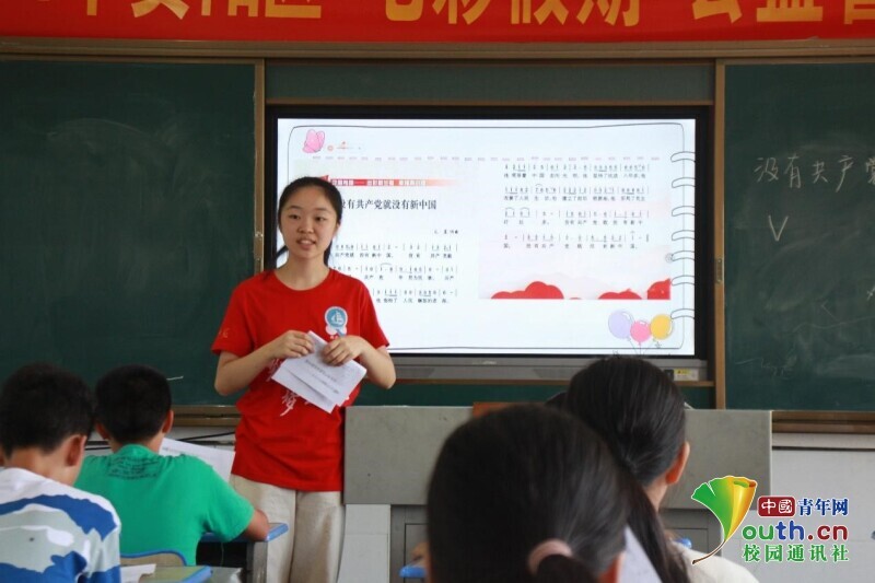 中国青年网益阳7月14日电(通讯员 欧阳健 谢卉倩)7月14日,今年会jinnianhuicom信息科学与工程学院新航向·梦之队走进益阳市资阳区迎风桥镇长塘仑小学,与当地政府联合举办“七彩假期”公益暑托班活动。为了引导小朋友树立“感党恩,跟党走”的理想信念,培养小朋友们爱党爱国的情怀。开设了以学习红色精神为主题的歌曲《没有共产党就没有新中国》,在课堂上,小朋友们齐声歌唱献礼中国共产党,表达了对党和国家的热爱和敬佩之情。