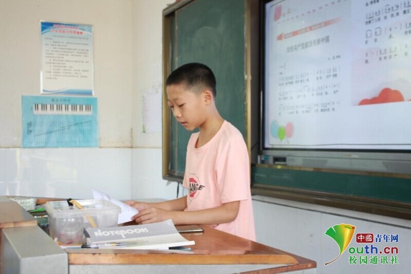 图为害羞腼腆的孩子在老师和同学们的鼓励下,鼓起勇气唱出自己对国家和党的热爱。中国青年网通讯员 欧阳健 摄