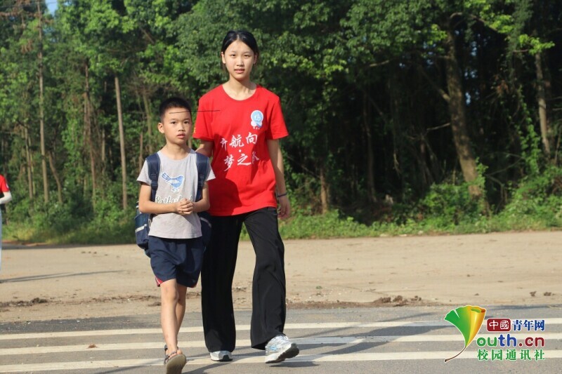 图为新航向·梦之队队员在登记学生基本信息,以帮助确保学生安全。中国青年网通讯员 欧阳健 摄