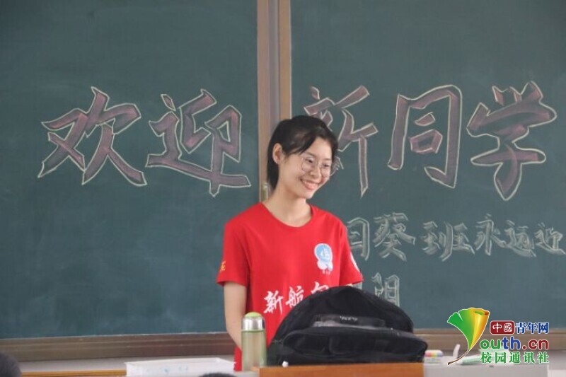 图为两位大班班主任与同学们在黑板前的合影。中国青年网通讯员 欧阳健 摄