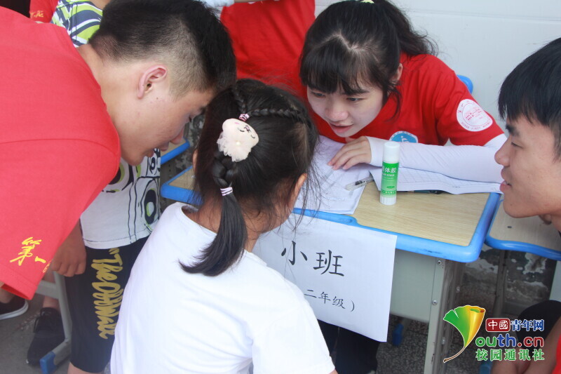 图为队员们正在为新同学们登记的基本信息。中国青年网通讯员 何星逸 供图