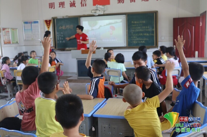 图为防溺水主题课堂上学生们积极举手回答老师的问题。中国青年网通讯员 段新利 摄