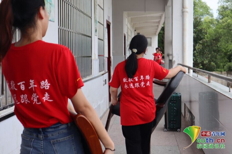 图为三下乡成员为报道的学生有一个好的环境打扫教室卫生。中国青年网通讯员 李惠婷 摄