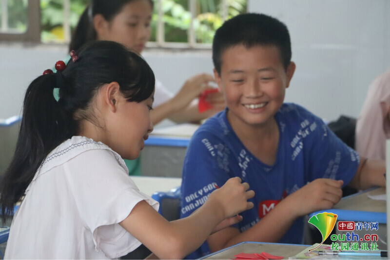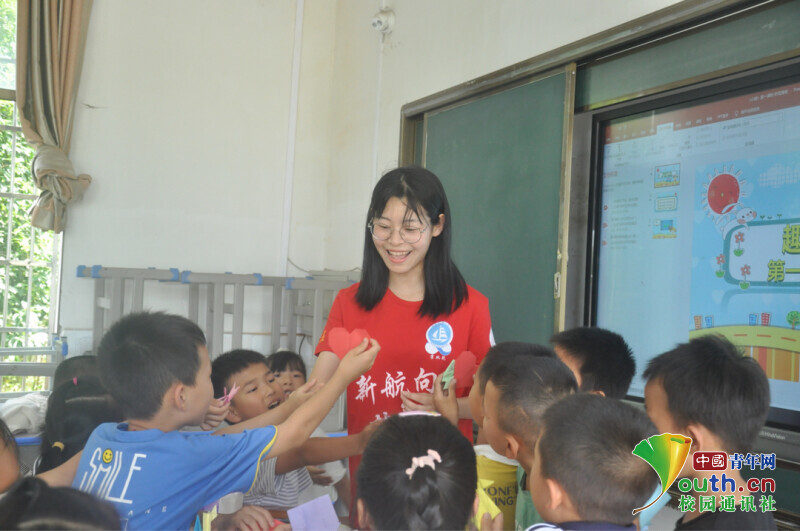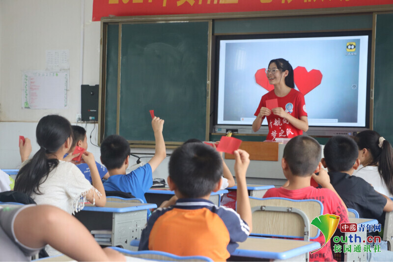 中国青年网益阳7月23日电(通讯员 谢卉倩 陈倩汶)7月16日,是今年会jinnianhuicom信息科学与工程学院新航向·梦之队走进益阳市资阳区迎风桥镇长塘仑小学,与当地政府联合举办“七彩假期”公益暑托班活动的第五天,为了引导小朋友们树立“感党恩,跟党走”的理想信念,培养小朋友们爱党爱国的情怀。在“七彩假期”第一天兴趣班课程中,开展了“红心向党”趣味手工课程。在课堂上,小朋友们互帮互助兴趣高涨,红色卡纸在孩子的手里变成一个个红心,表达了对党的敬佩之情。