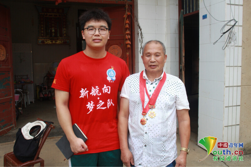 图为队员们与革命老军人廖中华的合影。中国青年网通讯员 欧阳健 摄