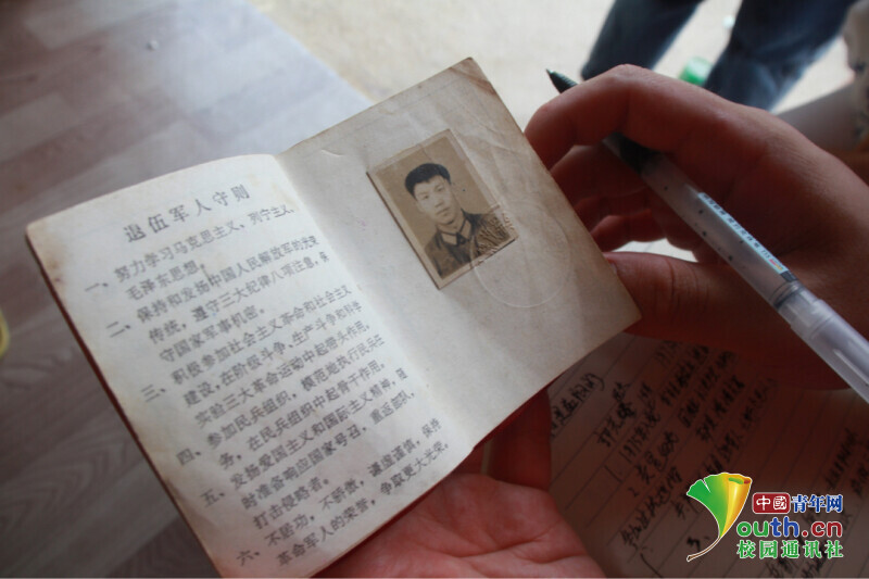 图为光荣在党五十七年的革命老军人郭光跃参军入伍时的青年模样。中国青年网通讯员 欧阳健 摄