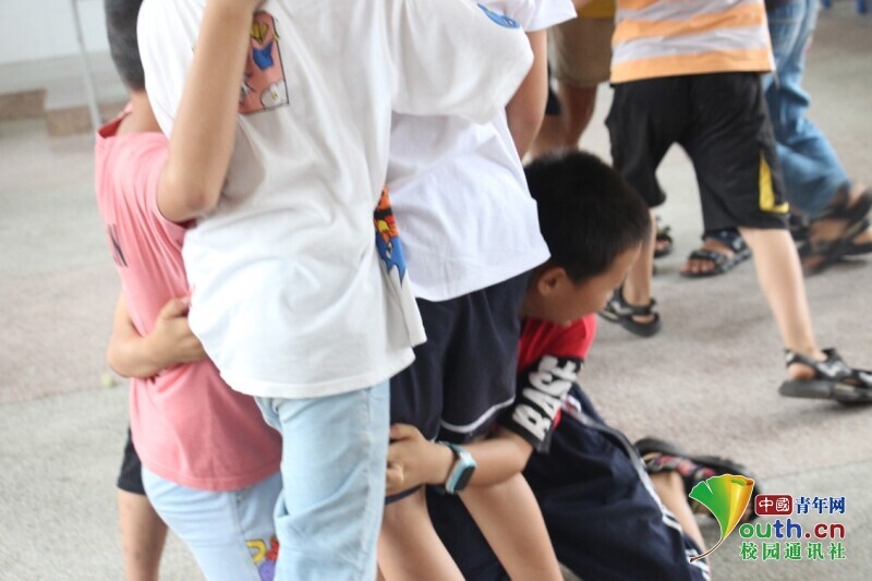 图为在拔河项目中小朋友全身都在用力。中国青年网通讯员 段新利 摄