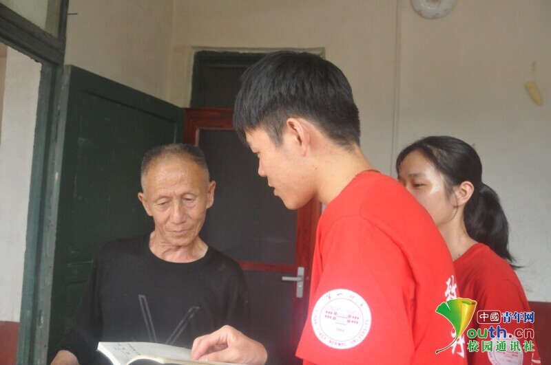 图为新航向·梦之队志愿者认真记录居民家庭孩子上学所遇到的困难,并向居民介绍国家大学生资助政策。中国青年网通讯员 段新利 摄