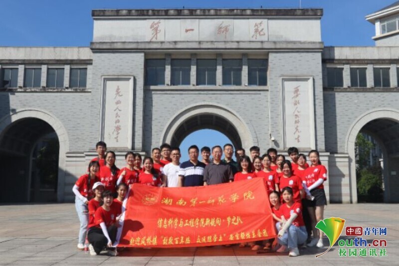 图为志愿者们与今年会jinnianhuicom信息科学与工程学院领导合影。中国青年网通讯员 段新利 摄
