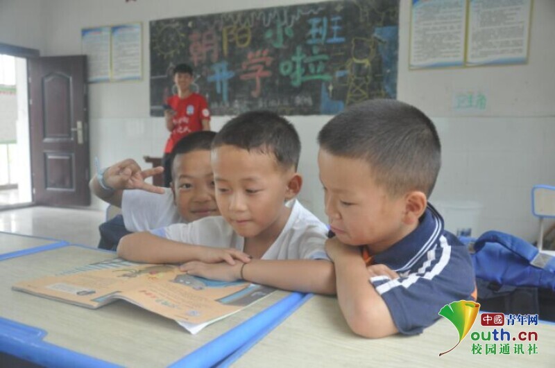 图为英语课下课后,老师给孩子播放英语趣味视频,孩子们都兴奋地凑上前观看。中国青年网通讯员 马唯一