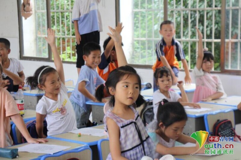 图为课堂上,孩子们积极举手回答老师的问题。中国青年网通讯员 马唯一 摄