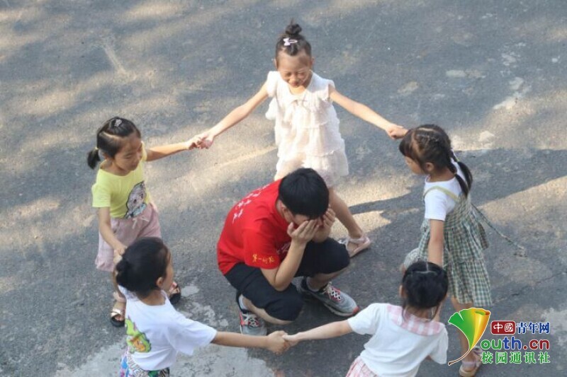 图为课间老师与学生们一起玩游戏。中国青年网通讯员 段新利 摄