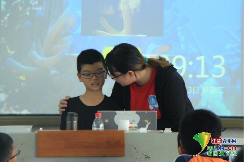 图为英语课上老师耐心地鼓励学生大胆用英语做自我介绍。中国青年网通讯员 何星逸 摄