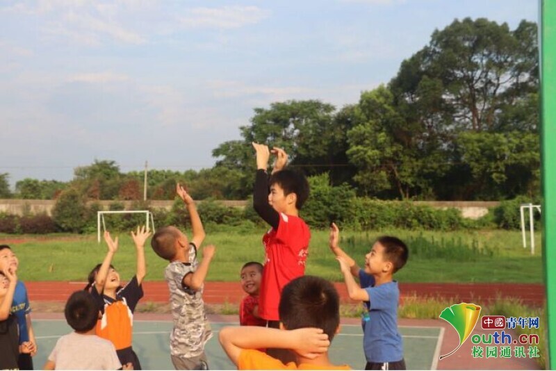 图为老师和学生一起在操场上打篮球。中国青年网通讯员 段新利 摄