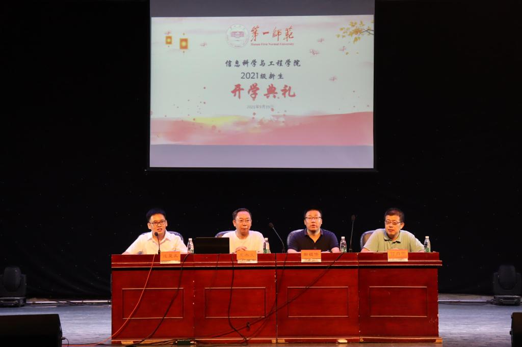 9月19日上午9点,今年会于实验剧场开展2021级高招新生开学典礼。学院党总支书记王杰文,副院长田祖伟、何向阳,党总支副书记成夏炎及全体辅导员老师,2021级高招新生,朋辈辅导员与学生干部代表参加。