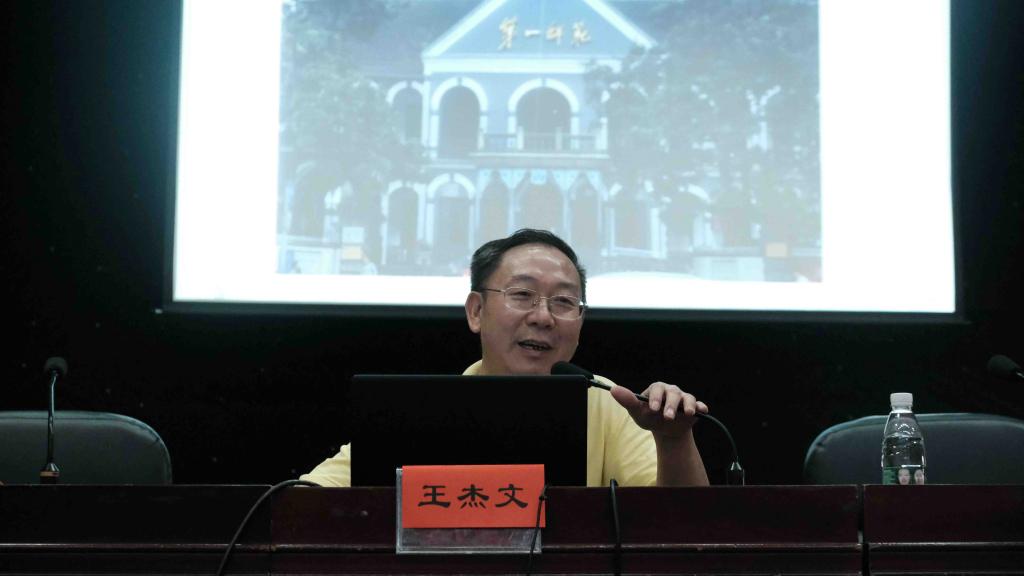 学院党总支书记王杰文分别从“为什么要上大学”、“大学与中学的异同”以及“如何快速适应大学生活”三个方面着手,对新生们进行了大学生活指导。他强调大学是一个多样化的场所,学生要从身心各个方面打磨自己,以此获得专业能力、交际能力与学习能力。