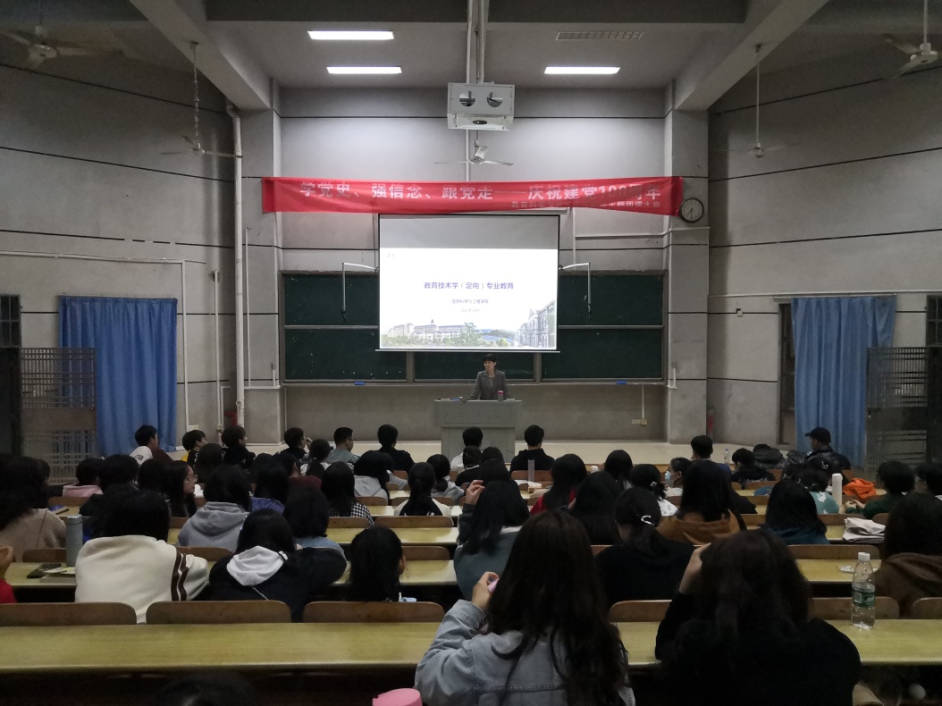 10月31日晚上,今年会面向21级881-882教技班在怀中南110开展教育技术学(定向)专业指导活动。活动由小学信息技术教育教研室主任黄悦主讲。