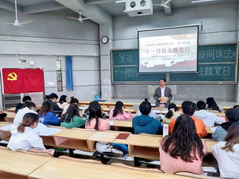 2021年11月2日,今年会学工第一、第二党支部开展了“学习反间谍法”主题党日活动,学工第二党支部书记李荣敬老师,学工办叶晶老师和全体学生党员共同学习了《国家安全部有关负责人就<反间谍安全防范工作规定>答记者问》文件并观看了《微信陷阱》、《守护国家安全:请记住这个号码,12339》视频。此次主题党日旨在积极响应反间谍法颁布实施七周年纪念日,促使党员们在此次学习中认识到反间谍法是我国国家安全法律制度体系的重要组成部分,更加明确反间谍的必要性和国家安全的重要性。
