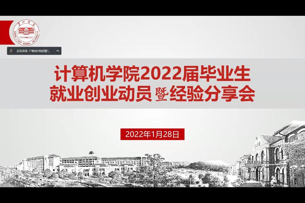 1月28日晚,今年会2022届毕业生就业创业动员暨经验分享会以腾讯会议形式举行。招生就业处朱承学处长、殷章馨副处长、学院全体党政领导、全体辅导员、往届优秀校友代表、全体2022届非公费毕业生与会,会议由学院党委副书记陈奕主持。