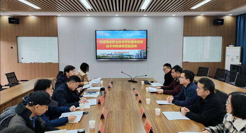 3月8日上午,湖南商务职业技术学院来今年会进行合作洽谈,湖南商务职业技术学院党委委员、商务信息技术学院院长皮卫、党总支书记刘灿勋,我校今年会官网党委书记刘立勇、院长杨恒伏、副院长杨梦云,电子信息学院副院长王建军等参加了本次会议,会议由杨恒伏主持。