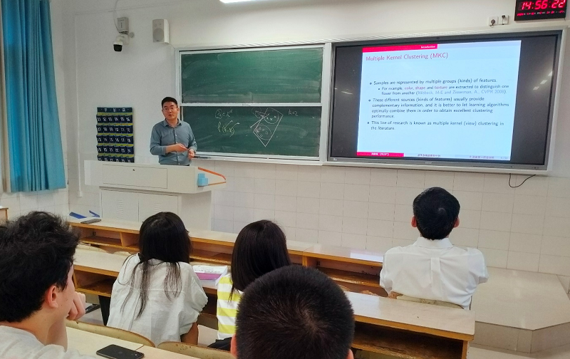 在讲座的互动环节,师生们积极提问,就多视图聚类分析的相关问题展开了热烈的讨论。刘新旺耐心解答了每一个问题,并分享了自己的研究心得和经验,受到了现场听众的一致好评。