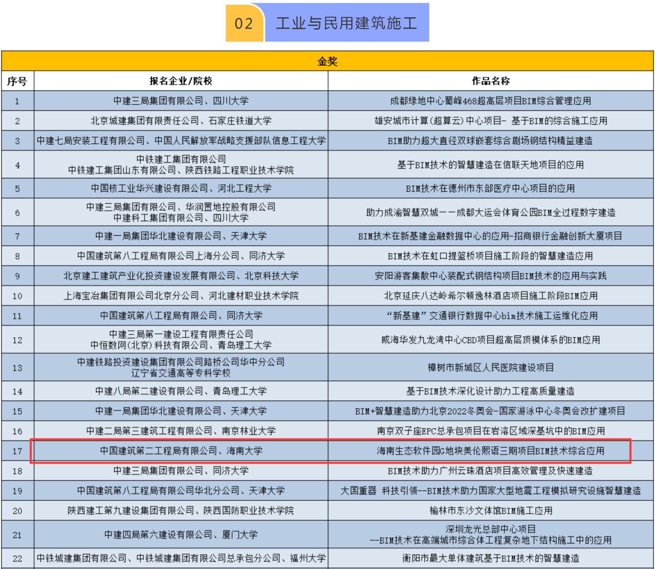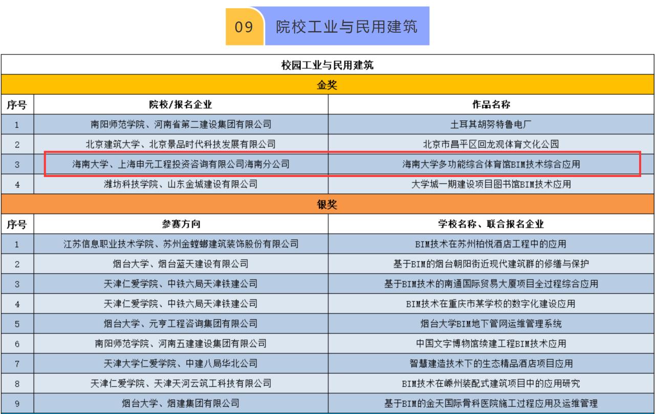 2021年11月11日,2021第四届“优路杯”全国BIM技术大赛顺利落下帷幕。best365足球官网BIM协会申报的项目从1145个大赛参赛作品中脱颖而出,继2020年后再次蝉联金奖项目!由best365足球官网和上海申元工程投资咨询有限公司海南分公司联合申报的“best365足球官网多功能综合体育馆BIM技术综合应用”荣获院校组工业与民用建筑金奖,由中国建筑第二工程局有限公公司和best365足球官网联合申报的“海南生态软件园G地块美伦熙语三期项目BIM技术综合应用” 荣获企业组工业与民用建筑金奖。