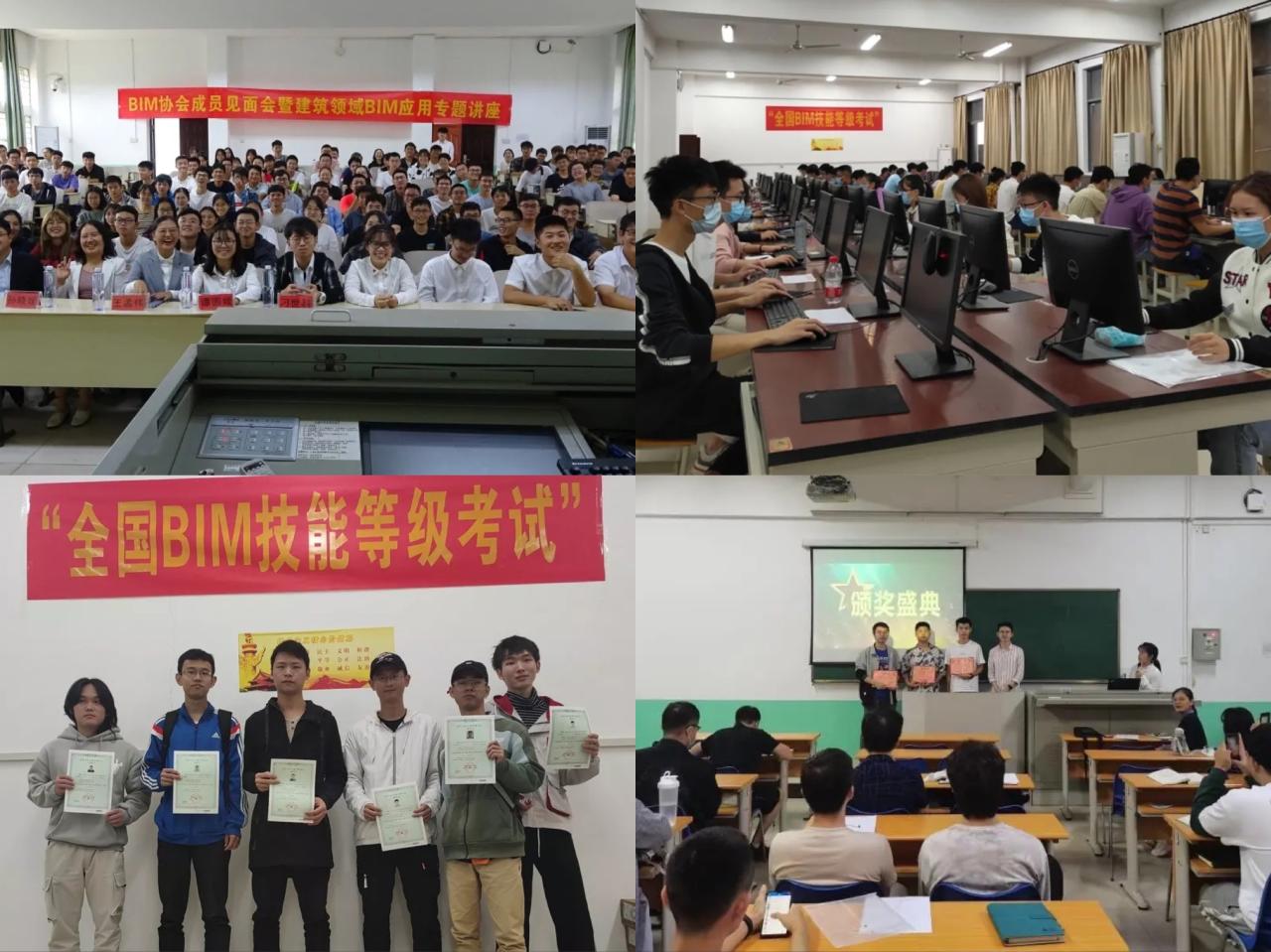 协会特色活动包括:(一)BIM讲座与培训。协会多次邀请国内知名高校教授和广联达、中建二局等知名企业家为会员举办BIM前沿讲座与软件培训,以拓宽学生视野,提高动手实操能力。(二)BIM考证工作。协会设置“全国BIM技能等级考试”best365足球官网考点,考试合格将获得中国图学学会颁发的《全国BIM技能等级考试证书》,每年通过培训获得证书者100余名。(三)BIM学科竞赛。协会每年培育各个学生团队,参与全国斯维尔杯BIM-CIM创新大赛、全国大学生结构设计信息技术大赛、全国高校BIM毕业设计创新大赛、全国大学生智能建造与管理创新竞赛等赛事并多次荣获奖项。(四)BIM创新创业项目。协会还为会员提供加入各种科研项目和校级创新创业项目的机会,积极参与“大学生创新创业训练计划项目”和“大学生科技创新基金项目”的申报,支持学生开展创新创业实践活动。