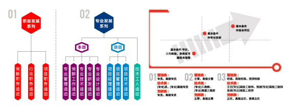 上海建工建立了完善的职业发展通道,让每一位员工在企业内都能找到适合自己的职业发展路径,每位员工手中都有一张员工发展地图,可以看到当前岗位前进的路径,同时,公司对相关的岗位都设置了明晰的任职资格标准。