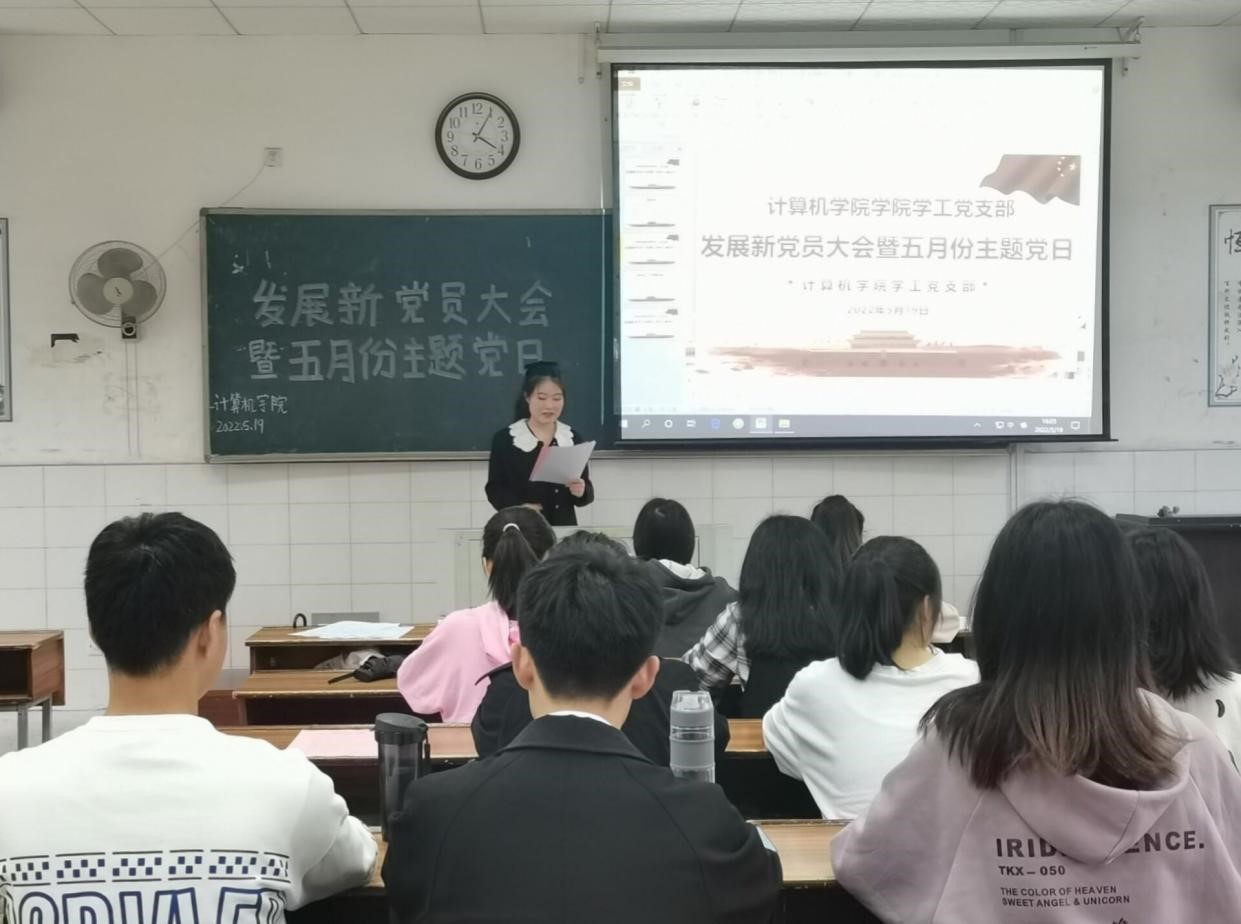 今年会于2022年5月19日开展了发展新党员大会暨五月份主题党日活动。与会人员有学院党委书记刘立勇、党委副书记陈奕、学工党支部书记关红儒、学院团委书记叶晶、学工办老师付小霞、全体学生党员以及发展对象。