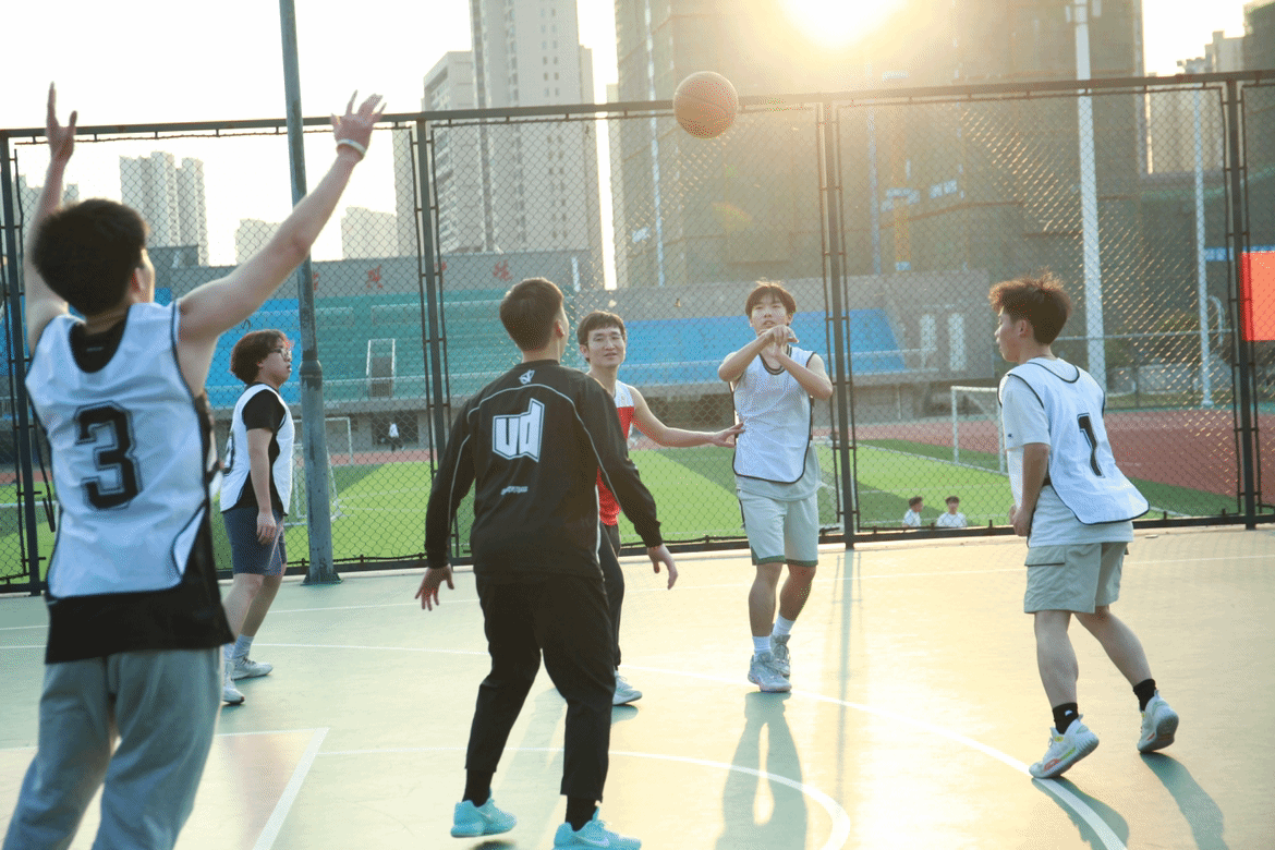 随着陈奕宣布活动月正式启动,全体人员齐声高呼代码跃动青春,文体赋能未来的激昂口号。随后进行的首场教职工队与24级网络安全专业联队师生篮球对抗赛将气氛推向高潮。双方队伍40分钟赛程中展现出精湛球技,教职工队凭借默契的战术配合稳扎稳打,学生队伍则以灵活身手上演精彩突破最终教职工队以三分优势险胜赛场上此起彼伏的喝彩声生动诠释了友谊第一,比赛第二”的体育精神。
