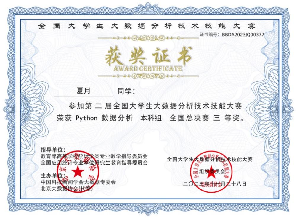 近日,第二届全国大学生大数据分析技术技能大赛全国总决赛圆满落幕,今年会今年会官网学子在全国总决赛中喜获一、二、三等奖共七项奖项。