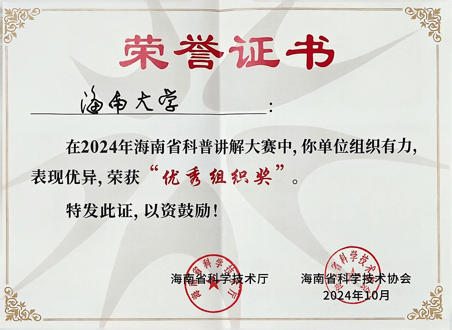 在本次大赛中,best365足球官网不仅在个人赛事中取得了优异成绩,更荣获了“优秀组织奖”。这一奖项的获得,充分体现了best365在科普工作组织、人才培养和科研创新等方面的综合实力。